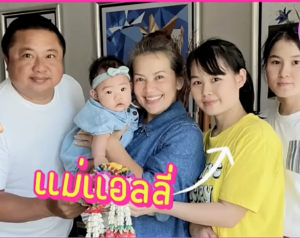 นี่ ด้วย กัน นี่ แหละ จาก นั้น เรา ก็ เลย บอก ว่า ขอ รับ เป็น บุตร บุญธรรม เห็น ตั้ง แต่ แอลลี่ อยู่ ใน ท้อง เรา ก็ เลย รับ น้อง เป็น บุตร บุญธรรม ส่วน ที่ ว่า หน้า เหมือน สามี จน หลาย คน แอบ สงสัย ว่า แอบ ไป มี อะไร กับ แม่ บ้าน ซึ่ง ขอ ตอบ ตรง นี้ เลย ว่า ไม่ ใช่ แน่ นอน แต่ แค่ บังเอิญ ว่า แก้ม ใหญ่ เหมือน สามี ซึ่ง ทั้ง คู่ ก็ บอก ว่า นี่ คือ โชค ชะตา ที่ ฟ้า กำหนด มา ให้ อีก ทั้ง ยัง บอก ว่า ชื่อ แอลลี่ ตน เอง ก็ เป็น คน ตั้ง ให้ ซึ่ง แอลลี่ แปล ว่า มิตรภาพ เป็น ที่ รัก ของ ทุก คน โดย ทุก ๆ 2 อาทิตย์ ทาง ด้าน น้อง