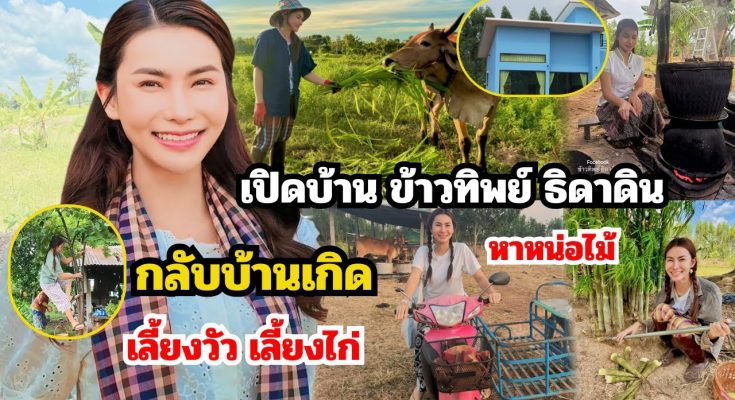 ใช้ เงิน ไม่ เยอะ ซื้อ พวก น้ำ ปลา พลีก เกลือ ก็ อยู่ ได้ แล้ว เพราะ บ้าน เรา ก็ ทำ นา ที่ บ้าน ก็ ปลูก ผัก เรา ก็ ไม่ ได้ ใช้ เงิน มาก มาย ตอน นั้น มี หลาน ตัว เล็ก ๆ พอ ดี เพิ่ง คลอด ก็ เลย ไป เลี้ยง หลาน แล้ว ก็ ไป ช่วย พ่อ แม่ ทำ นา ปลูก ผัก จน ได้ มี โอกาส เข้า มา สู่ เส้น ทาง สาย ละคร จน เป็น ที่ รู้ จัก ใน ฐานะ นัก แสดง อีก ทาง แต่ ก็ ยัง ไม่ หยุด ฝัน ด้าน การ ร้อง เพลง และ ยัง มี ผล งาน เพลง ออก มา ต่อ เนื่อง เรียก ว่า ข้าว ทิพย์ ธิดาิน เป็น อีก หนึ่ง คน ดัง ที่ รัก บ้าน เกิด เมื่อ กลับ ไป เยี่ยม ครอบครัว ก็ ใช้ ชีวิต ปกติ ช่วย พ่อ แม่ เลี้ยง