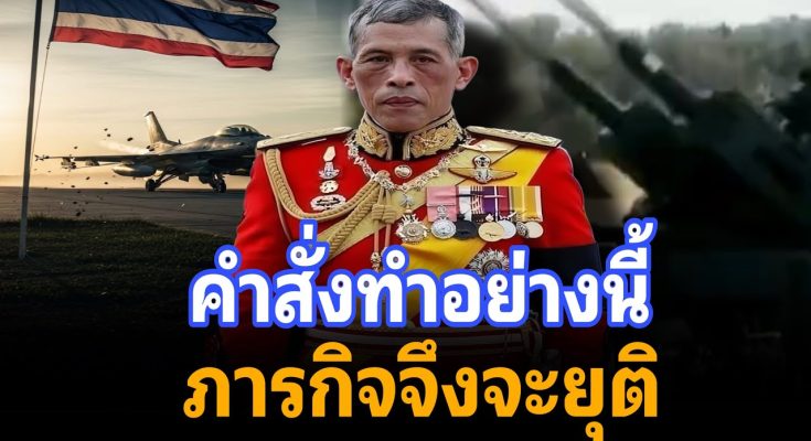 ในหลวง รัชกาล ที่ 10 ทรง บัญชา การ รบ ด้วย พระ องค์ เอง คำ สั่ง ให้ ทำลาย ยุบ โทปกร ทาง ทหาร ของ เขมร ทั้ง หมด จน กว่า จะ ไม่ เป็น อันตราย ต่อ ประเทศ ไทย ได้ อีก ภารกิจ จึง จะ ยุติ กอง ทัพ ภาค 2 ยื่น คำ ขาด หุ่นเซ็น ลูก ชาย หาก ต้องการ หยุด ยิง ให้ หยุด กระเหี้ยน กระหือรือ อยาก ได้ พื้น ที่ ของ ไทย ถอน เรื่อง ศาล โลก มา คุย โต๊ะ เจรจา เท่า นั้น ในหลวง พระ ราชินี สุธิดา ทรง รับ ผู้ บาด เจ็บ และ ผู้ เสีย ชีวิต จาก เหตุ การณ์ ชาย แดน กัมพูชา ไว้ ใน พระ บรมราชานุเคราะห์ ทั้ง หมด โดย เมื่อ วัน ที่ 24 กรกฎาคม 256