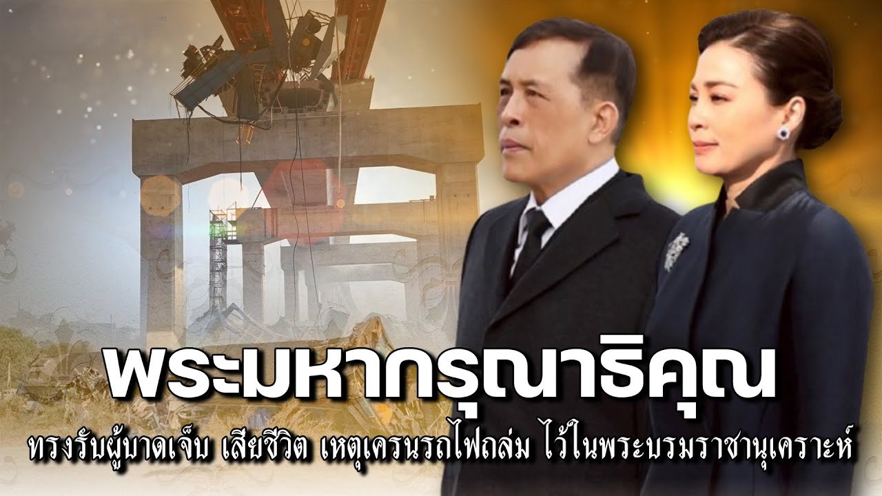 ในหลวงพระราชินีทรงรับผู้บาดเจ็บและเสีย ชีวิตเหตุเขนรถไฟถล่มไว้ในพระ บรมราชานุเคราะห์ พระบาทสมเด็จพระเจ้าอยู่หัวและสมเด็จพระ นางเจ้าพระบรมราชินีทรงห่วงใยและทรงเสีย พระราชหฤทัยต่อเหตุการณ์เคนใช้ก่อสร้าง ทางรถไฟความเร็วสูงถล่มทัพรถไฟทรงรับผู้ บาดเจ็บทั้งหมดไว้เป็นคนไข้ในพระ บรมราชานุเคราะห์และทรงรับศพผู้เสียชีวิต ไว้ในพระบรมราชานุเคราะห์ รวมทั้งพระราชทานเงินสงเคราะห์ช่วยเหลือ วันที่ 15 มกราคม 2569 พระบาทสมเด็จพระเจ้าอยู่หัวและสมเด็จพระ นางเจ้าพระบรมราชินีทรงห่วงใยและทรงเสีย พระราชหฤทัยต่อเหตุการณ์เคลนใช้ก่อสร้าง