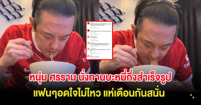 ล่าสุด หนุ่ม ศรราม ทำเอาแฟนๆต่างเข้ามาคอมเมนต์เตือนกันไม่น้อยเมื่ออัดคลิปขณะนั่งทานบะหมี่กึ่งสำเร็จรูป อาทิ อย่าทานบ่อยนะพี่ โซเดียมสูง ไม่ดีต่อไต,เป็น ไตอยู่นี่ เลี่ยงม่าม่าเลยคะ,หลีกเลี่ยงบะหมี่กึ่งสำเร็จรูปนะคะ อย่ากินเลย เป็นห่วงสุขภาพ
