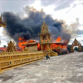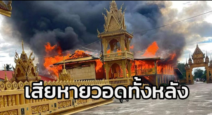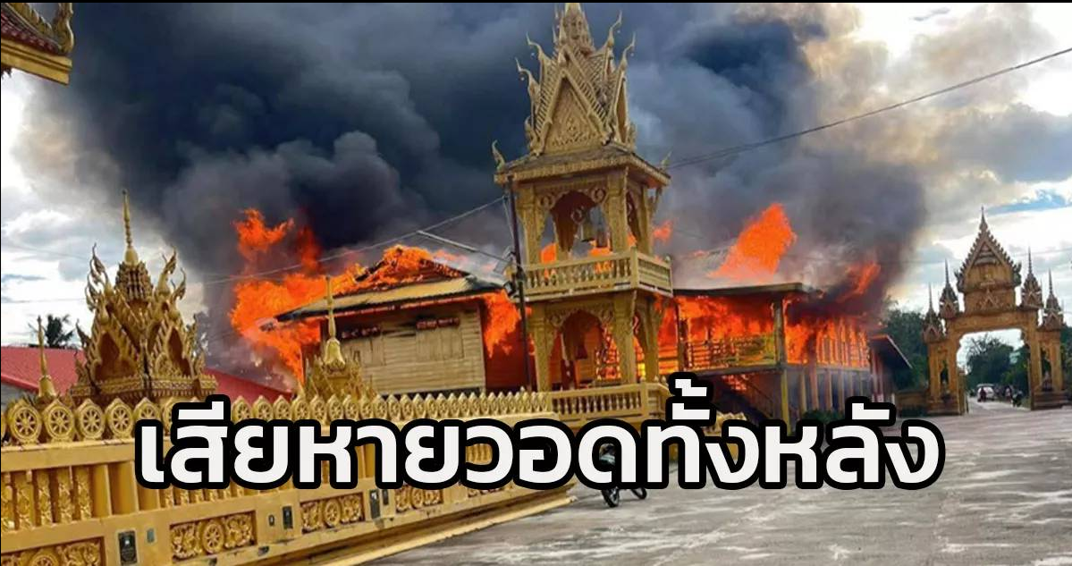 เพลิงไหม้ศาลาการเปรียญเก่าแก่ ภายในวัด เสียหายวอดทั้งหลัง จ.ร้อยเอ็ด