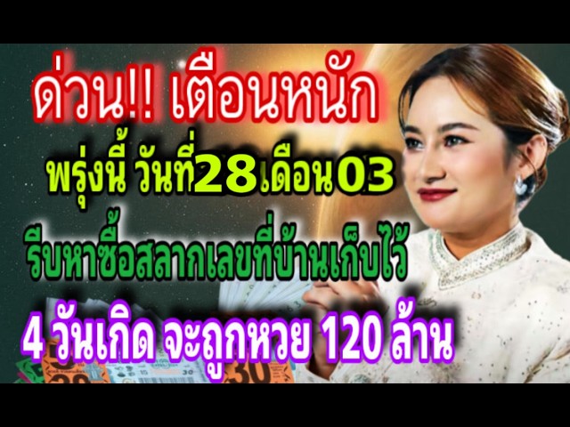 เหมาะ สม แก่ ตัว ท่าน แล้ว ดวง ชะตา ท่าน จะ พลิก ผัน อย่าง แน่ นอน ดวง การ เงิน ท่าน จะ พลิก แล้ว ทำ อะไร ก็ รวย หยิบ จับ อะไร ก็ เป็น เงิน เป็น ทอง เหตุ ก็ เพราะ ว่า ตัว ท่าน นั้น หาก จะ ทำ การ ซื้อ หวย 2 ตัว 3 ตัว ย่อม ที่ จะ ได้ จับ เงิน หมื่น รอ รับ โอน เงิน แสน หรือ หาก จะ สุ่ม หยิบ ซื้อ ล็อตเตอรี่ หลับ ตา หยิบ ปิด ตา ซื้อ รางวัล ใหญ่ ก็ ย่อม เข้า หา หรือ หาก ได้ สุ่ม ซื้อ หวย ชุด ไม่ ว่า จะ เป็น ชุด 5 ใบ 10 ใบ ย่อม ที่ จะ ถูก รางวัล ที่ 1 สูง สุด 48 ล้าน พลิก เปลี่ยน ชะตา ฐานะ ให้ ได้ เป็น เศรษฐี เงิน ล้าน ใน ชั่ว