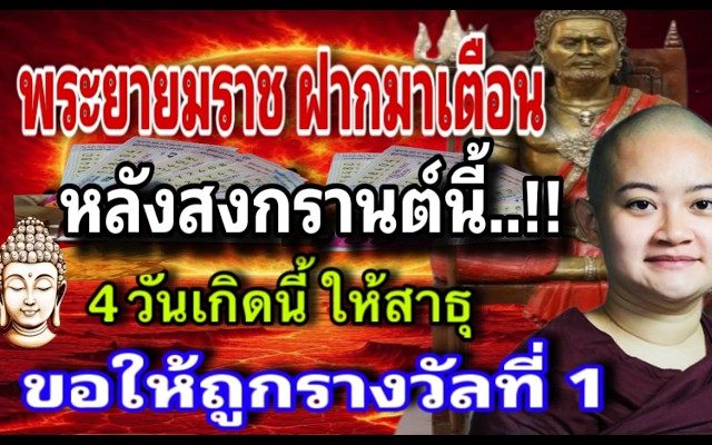 ตัวท่านนั้นได้มีโอกาสบวชพระหมู่ พระใหม่ซึ่งเป็นพระจำนวนมากและในการกระทำ ในครั้งนี้ท่านทำด้วยจิตใจที่บริสุทธิ์ อีกด้วยทั้ง 3 ประการที่กล่าวมาข้างต้น นั้นจะส่งผลแรงมากในงวดที่จะถึงนี้ถือว่า เป็นวันสำคัญเพราะวันดังกล่าวนั้นจะเป็น วันบุรวงสรวงของพญานาคทั้ง 4 ตระกูลทำให้ ดวงชะตาของตัวท่านนั้นจะดึงดูดกระแสเงิน สดครั้งใหญ่ให้ถาโถมเข้าหาเพื่อมาพลิก เปลี่ยนชะตาฐานะชีวิตจากร้ายย่อมกลายเป็น ดีจากไม่มีย่อมกลายเป็นเศรษฐีเงินล้านจะ 2 ตัว 3 ตัวหรือจะเป็นเลข 6 ตัวหรือสลากชุด ใหญ่ต่อให้สาวกองสลากจะเขย่า 100 ครั้ง พันครั้งตัวเลขก็ยังตรงกับตัวท่านที่ซื้อ