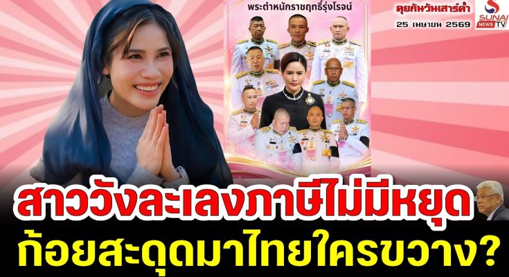 การจัด 75 รูปนี้เนื่องในโอกาส เฉลิมพระชนภาษา 4 รอบของสมเด็จพระนางเจ้า ที่จะถึงในวันที่ 3 มิถุนายน เมื่อเป็นอย่างี้ก็ยิ่งชัดว่าคุณก้อยจะมา ยังไง มาในงานที่จะเฉลิมพระชนพรรษาของราชินี สุธิดา มันจะจับตาดูก็ได้ครับว่าจากเมษายน พฤษภาคมมิถุนายนอีกเดือนเศษๆเนี่ยถ้าคุณ ก้อยไม่ได้มาก็ยิ่งชัดเจนว่าสมณศักดิ์พระ 75 รูปนี้คุณก้อยไม่ได้จัดแน่นอน นะครับนี่แหละครับ นี่แหละคือข่าวสารบท วิเคราะห์ที่ขาดหายไปในประเทศไทยที่ผมบอก ว่าธรรมนาวัง เนี่ย ถ้าจะดูให้ลึกก็คือธรรมะนาวาสร้างบารมีใน วังเจ้าของโครงการคือคุณก้อย ท่านก็คงจะทรงโปรดเ้าทำไปทำไปแต่ไม่ต้อง มานะดังนั้น 2-3 เดือนนี้คุณก็ไม่ได้กลับ