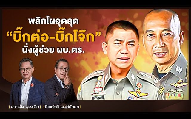 เรียง กัน นะ ถ้า พ้น จาก นั้น นะ สมมติ เป็น ธนา ชูวงศ์ อือ พ้น จาก ธนา ชูวงศ์ พฤกษ์ สมมุติ เป็น บิ๊กโจ๊ก พ้น จาก บิ๊กโจ๊ก เป็น สำราญ นวล มาก ๆ แล้ว เป็น อ่า จิรภพ ภูริเดช มี คน ละ 222 เลย ว่า นี่ เห็น คือ ผู้ ชม จะ ฟัง แล้ว จะ เห็น ทาง เลย ว่า เส้น ทาง ถ้า ไม่ มี อะไร สะดุด นะ กลุ่ม ของ ขั้ว อำนาจ ใน สตช เนี่ย ทำ งาน ด้วย ครับ มัน จะ ไม่ ผิด อย่าง นี้ ไม่ ที่ จะ อาจ จะ มี แข่ง กัน บ้าง เปลี่ยน คือ แต่ ละ ช่วง มี สอง คน สอง คน ก็ แข่ง กัน คือ บ่ อ่าน ทาง กัน ถูก ยก เว้น เกิด อะไร ขึ้น มา พลิก ฟ้า พลิก แผ่น ดิน ครับ คือ ยัง โจ๊ก