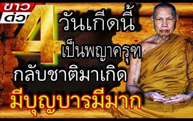 อดีตชาติ นั้น ตัว ท่าน ได้ เคย เกิด อยู่ ใน เหล่า เทวดา ใน ชั้น จตุ มหาราชิกา ซึ่ง ถือ เป็น เทวดา ที่ มี บุญ บารมี และ มี ทรัพย์ เป็น อัน มาก และ มี นาย เหนือ หัว คือ องค์ ท้าว จตุโลกบาล ทั้ง 4 ซึ่ง หนึ่ง ใน นั้น ก็ คือ องค์ ปู่ ท้าว เวสสุวรรณ และ องค์ ปู่ ก็ จะ มา ช่วย หนุน ดวง ให้ แก่ ตัว ท่าน ก็ จะ ได้ เป็น เศรษฐี เงิน ล้าน ร่ำ รวย ใน พริบ ตา อย่าง แน่ นอน ยก ธง ชี้ ชัด ตาม คำ ทำนาย นี้ และ ยัง มี นิมิต จะ ทำ การ ทัก บอก อีก ว่า คน ที่ เกิด ใน 4 วัน เกิด ดัง ต่อ ไป นี้ ตัว ท่าน นั้น ยัง ได้ เคย เกิด อยู่ ใน เหล่า เทว เทวดา พญา นาค